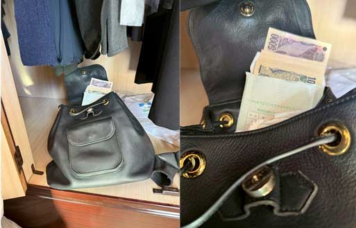 現金は、洋服タンス奥のショルダーバッグの中から発見しました。